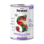 Alimento húmedo sin cereales (grain free) Dibaq Sense de ciervo y jabalí acompañado con arándanos.