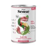 Alimento húmedo sin cereales (grain free) Dibaq Sense de cordero acompañado con judías verdes y manzana.