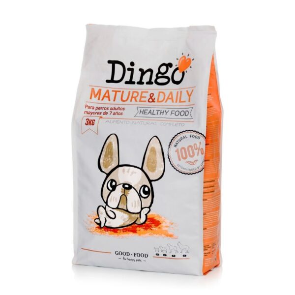 El pienso natural Dingo Mature es un alimento ideal para aquellos perros senior de avanzada edad cuyo metabolismo necesita una alimentación más baja en grasas que un perro adulto. Es pienso elaborado con ingredientes naturales de alta calidad que aporta una dieta sana y óptima que proporción un efecto anti-envejecimiento, mejora la salud ocular, refuerza las articulaciones y ayuda frente a los desórdenes seniles típicos en edades avanzadas.