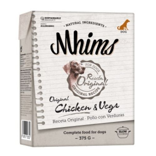 Mhims Chicken & Vegs es un alimento húmedo natural y completo para perros adultos. Esta comida húmeda esta elaborada a base de pollo fresco y verduras de alta calidad. Su proceso lento de elaboración garantiza que las propiedades de sus ingredientes permanezcan intactas.
