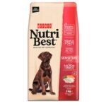 Pienso natural para perros NutriBest Adult Sensitive Salmon & Rice elaborado a base de salmón y arroz para perros adultos de razas medianas y grandes.